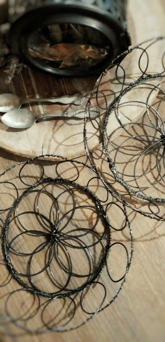 Canasta redonda, base con forma de flor/mandala