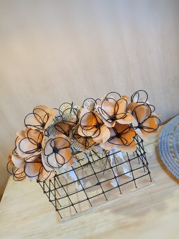 Ramo de 6 flores, tratadas y selladas, sujetas con lazo puntilla y yute.