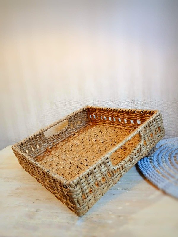 Bandeja cuadrada de hierro encordada en hilo kraft