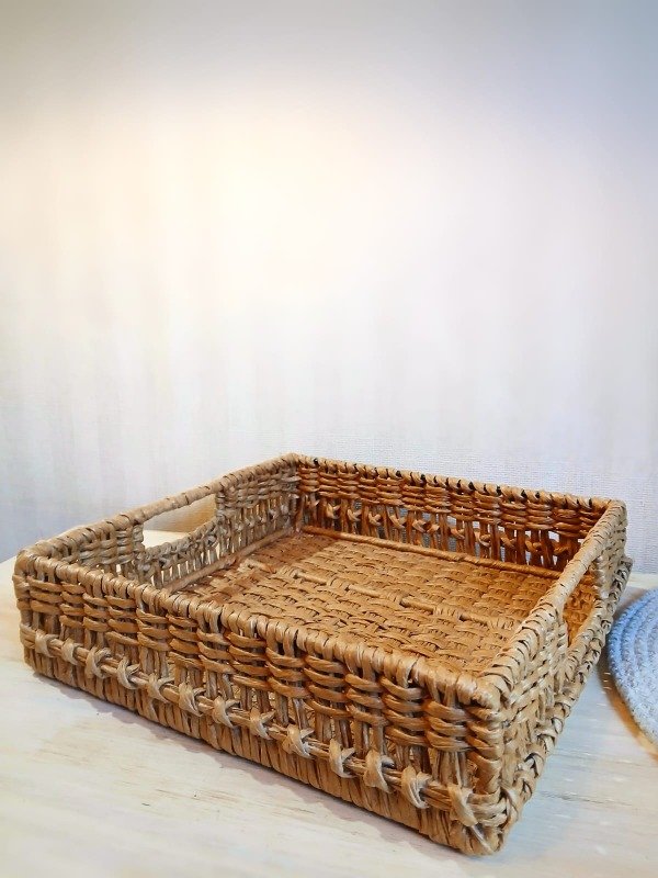 Bandeja cuadrada de hierro encordada en hilo kraft