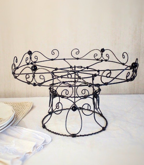 Pie para plato de 25 cm con trama y cuentas negras