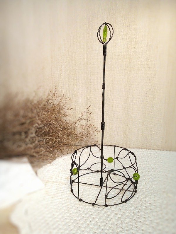Portarrollo de cocina con guarda de flores y cuentas de vidrio verde